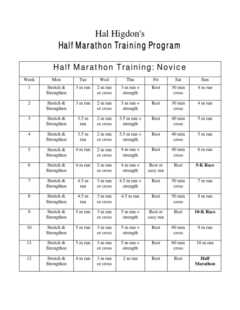 Hal Higdon S Novice Half Marathon Training Program